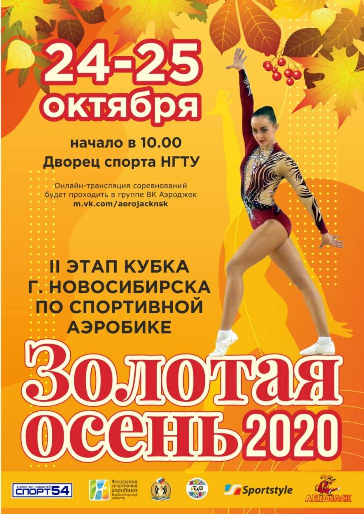 24 и 25 октября во дворце спорта НГТУ пройдет II этап кубка г. Новосибирск по спортивной аэробике «Золотая осень 2020». Зрители на соревнования не допускаются.